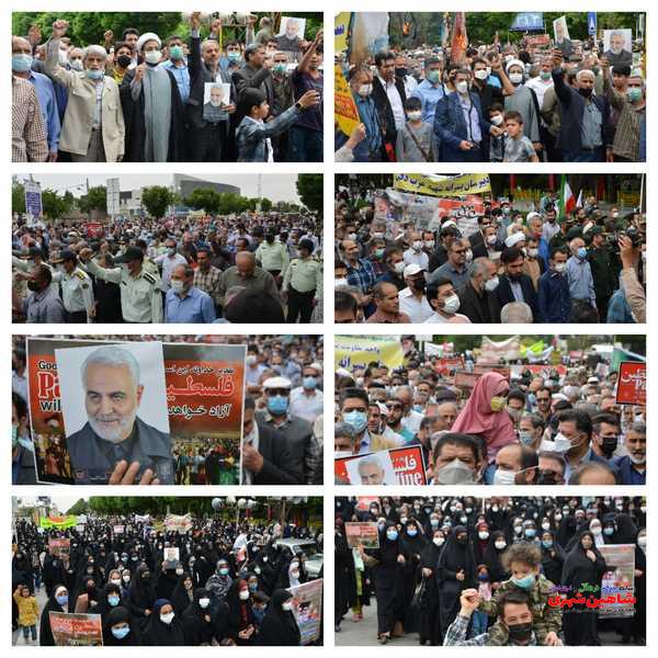 امروز نهم اردیبهشت ماه مصادف با آخرین جمعه از ماه مبارک رمضان در سال ۱۴۰۱ ، مراسم راهپیمایی روز قدس با حضور مسؤلین و اقشار مختلف مردم در شاهین شهر برگزار شد.