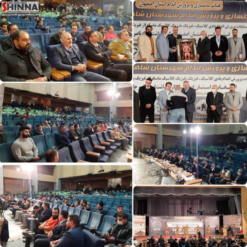 مسابقات پرورش اندام انتخابی استان اصفهان برای اولین مرتبه با قضاوت داوران بین المللی و به سبک استانداردهای فدراسیون جهانی IFBB در شهرستان شاهین شهر و میمه برگزار شد
