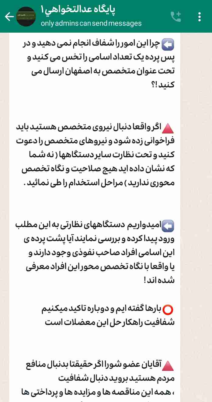 آقایان عضو شورا اگر حقیقتا بدنبال منافع مردم هستید بروید دنبال شفافیت ، همه این مناقصه‌ها و مزایده‌ها و پرداختی‌ها و ترک تشریفات و این نامه نگاری‌ها و استخدام‌ها باید شفاف در سامانه‌ای مندرج شود تا عموم مردم نظارت کنند و در پشت پرده این اتفاقات رخ ندهد !