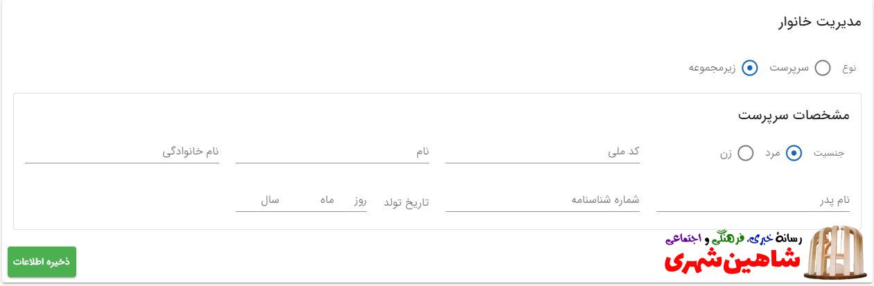در غیر اینصورت گزینه “زیرمجموعه” را انتخاب نمایید و مشخصات سرپرست را وارد کنید.