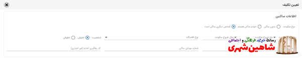 ب- در صورتیکه مالک اقامتگاه اصلی خود نیستید در این مرحله باید اطلاعات مالک و تاریخ شروع سکونت ملک خود را انتخاب نمایید.