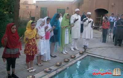 مردم کاریزات (بخشی در۱۲۰ کیلومتری یزد) که آن را در روز اول تیرماه، با نام « آب، تیر، ماهی » برگزار میکنند.