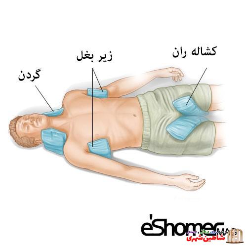 اگر هم دماسنج در اختیار نداشتید، تا وقتی که با لمس کردن بدن او احساس می کنید خنک نشده، عمل خنک کردن را ادامه دهید. ولی به محض خنک شدن بدن فرد ، عمل خنک کردن ( در آب سرد یا به شکل دیگر ) را متوقف کنید و اگر دمای بدن او مجدداً افزایش یافت، عمل خنک کردن را از نو شروع کنید.